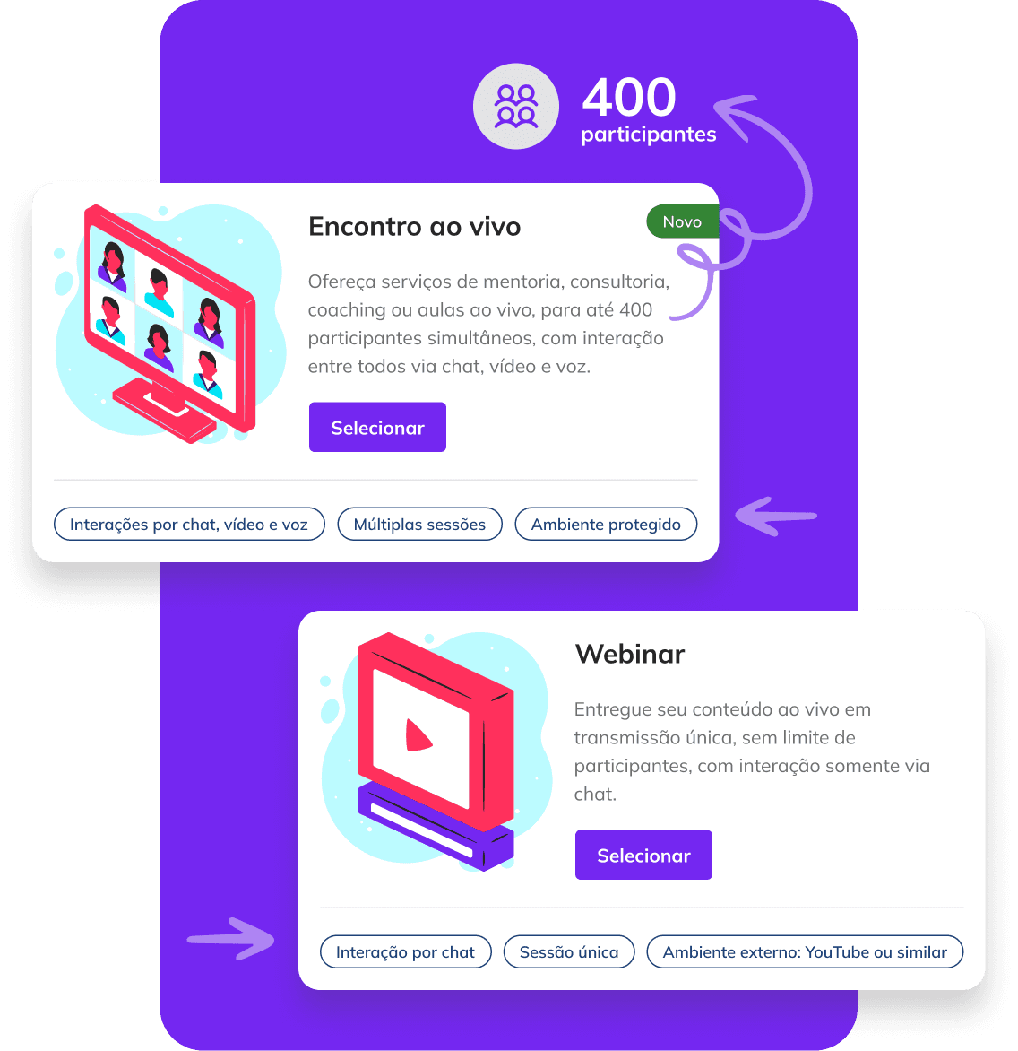Product Creation: Since we have two different “live” product types on the platform, usability tests revealed the need to help infoproduct creators quickly identify which option best suits their needs. To address this, I added tags to the product cards for quicker scanning and used illustrations to visually represent the differences between each solution.